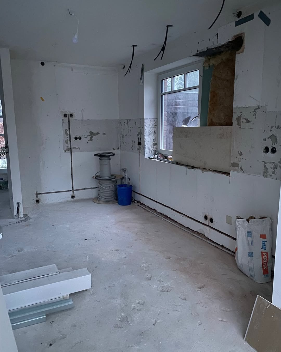 Duvar ve zemin düzeltme: Kırımlar sonrası yüzeyler tamir edildi, sıva ve astar uygulandı.